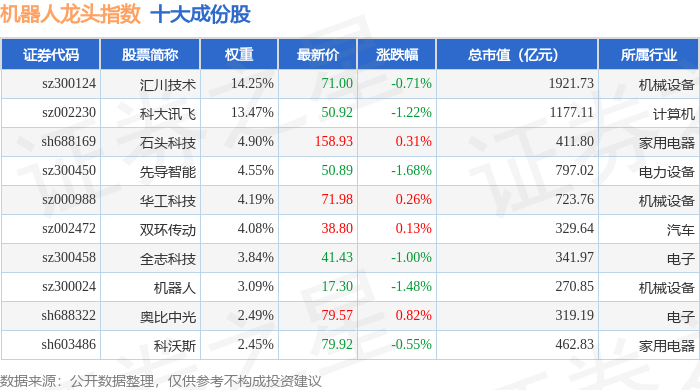 资金流向方面,机器人龙头(980071)指数成份股当日主力资金净流出合计14.18亿元,游资资金净流入合计4.14亿元,散户资金净流入合计10.04亿元。成份股资金流向详情见下表:
