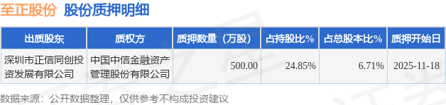 证券之星消息,至正股份(603991)11月19日公开信息显示,股东深圳市正信同创投资发展有限公司向中国中信金融资产管理股份有限公司合计质押500.0万股,占总股本6.71%。质押详情见下表: