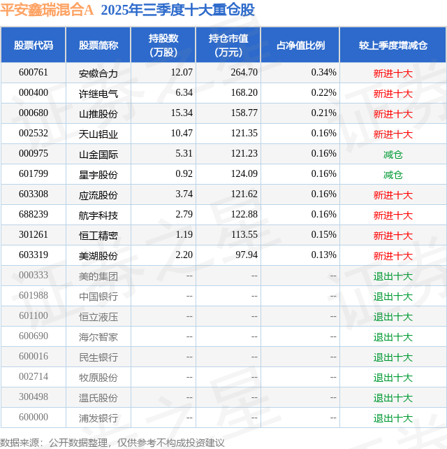 根据2025基金Q3季报公募基金重仓股数据,重仓该股的公募基金共1家,其中持有数量最多的公募基金为平安基金的平安鑫瑞混合A。平安鑫瑞混合A目前规模为2.71亿元,最新净值1.0866(11月19日),较上一交易日上涨0.01%,近一年上涨6.4%。该公募基金现任基金经理为张恒。张恒在任的基金产品包括:平安惠添纯债债券,管理时间为2019年6月21日至今,期间收益率为23.79%;平安中债1-5年政策性金融债A,管理时间为2020年12月10日至今,期间收益率为18.54%;平安季季享3个月持有债券A,管理时间为2021年3月17日至今,期间收益率为13.7%;
