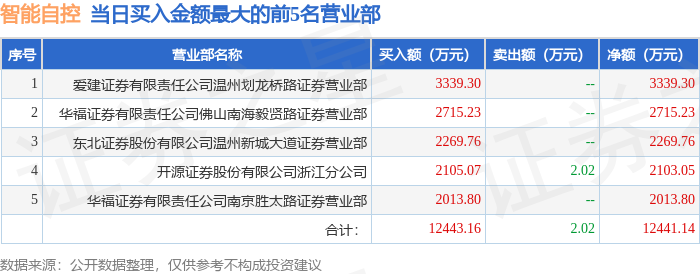 证券之星消息,沪深交易所2025年11月20日公布的交易公开信息显示,智能自控(002877)因日振幅值达到15%的前5只证券,日涨幅偏离值达到7%的前5只证券,日换手率达到20%的前5只证券登上龙虎榜。此次是近5个交易日内第2次上榜。