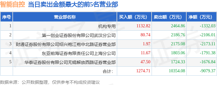 从龙虎榜公布的当日买卖数据来看,机构合计净卖出1332.03万元。