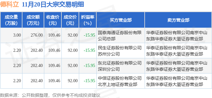 证券之星消息,11月20日德科立发生大宗交易,交易数据如下: