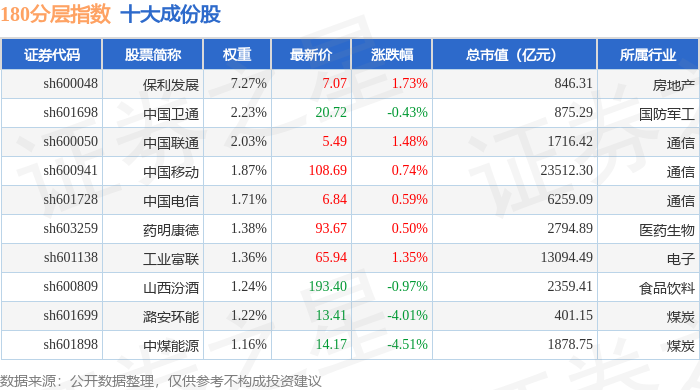 资金流向方面,180分层(000093)指数成份股当日主力资金净流出合计55.57亿元,游资资金净流入合计12.31亿元,散户资金净流入合计43.27亿元。成份股资金流向详情见下表: