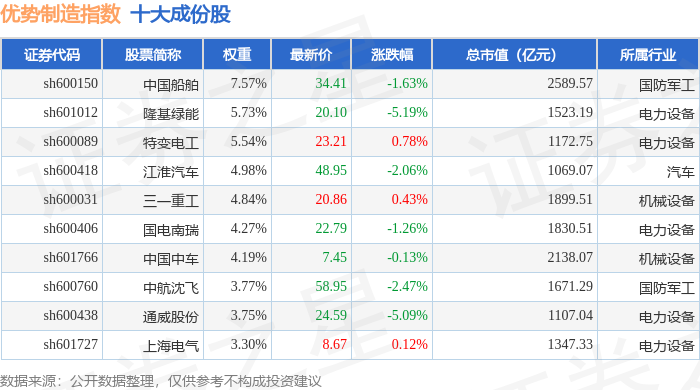 证券之星消息,11月20日,优势制造(000146)指数报收于7557.6点,跌1.52%,成交458.54亿元,换手率1.29%。当日该指数成份股中,上涨的有11家,金盘科技以2.71%的涨幅领涨,下跌的有37家,大全能源以6.7%的跌幅领跌。