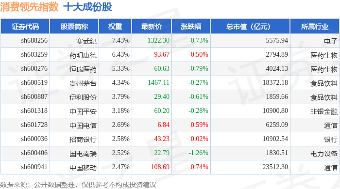 证券之星消息,11月20日,消费领先(000148)指数报收于9550.65点,跌0.38%,成交938.26亿元,换手率0.46%。当日该指数成份股中,上涨的有31家,中国银行以4.0%的涨幅领涨,下跌的有65家,昭衍新药以4.91%的跌幅领跌。