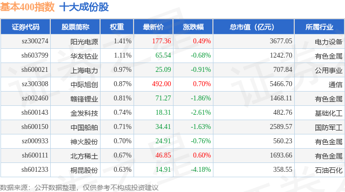 证券之星消息,11月20日,基本400(000966)指数报收于8719.4点,跌0.7%,成交2679.5亿元,换手率1.4%。当日该指数成份股中,上涨的有113家,天华新能以6.09%的涨幅领涨,下跌的有270家,首开股份以8.26%的跌幅领跌。