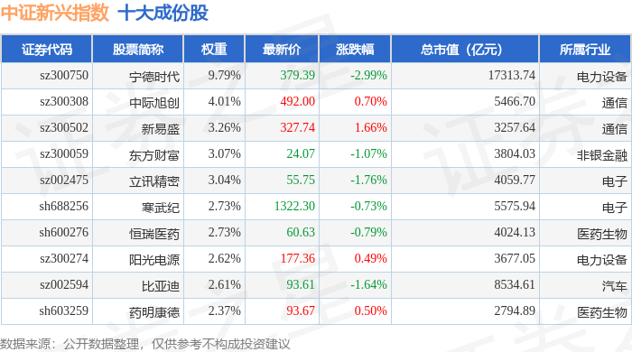 证券之星消息,11月20日,中证新兴(000964)指数报收于10677.4点,跌0.98%,成交2160.66亿元,换手率1.03%。当日该指数成份股中,上涨的有27家,恒立液压以2.56%的涨幅领涨,下跌的有71家,隆基绿能以5.19%的跌幅领跌。