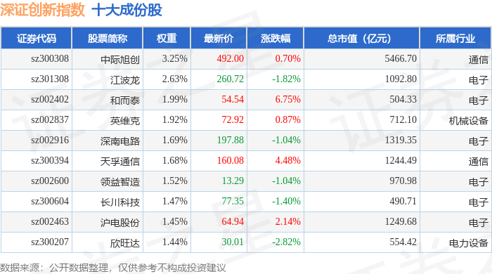 证券之星消息,11月20日,深证创新(399016)指数报收于5394.29点,跌0.61%,成交1172.38亿元,换手率1.52%。当日该指数成份股中,上涨的有25家,和而泰以6.75%的涨幅领涨,下跌的有74家,亿纬锂能以3.42%的跌幅领跌。