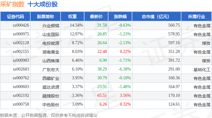 证券之星消息,11月20日,采矿指数(399232)报收于3880.19点,跌0.75%,成交199.42亿元,换手率2.74%。当日该指数成份股中,上涨的有8家,大中矿业以7.06%的涨幅领涨,下跌的有22家,广东宏大以6.38%的跌幅领跌。