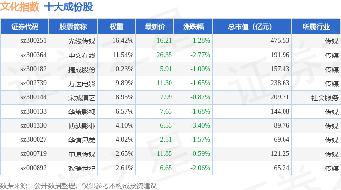 资金流向方面,文化指数(399248)成份股当日主力资金净流出合计5.3亿元,游资资金净流出合计7791.3万元,散户资金净流入合计6.08亿元。成份股资金流向详情见下表: