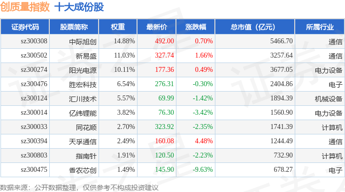 证券之星消息,11月20日,创质量(399269)指数报收于7383.8点,跌0.59%,成交1144.55亿元,换手率2.55%。当日该指数成份股中,上涨的有20家,匠心家居以9.06%的涨幅领涨,下跌的有79家,香农芯创以9.63%的跌幅领跌。