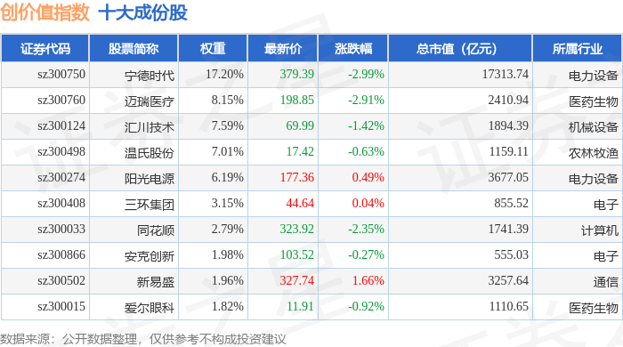 创价值(399295)指数十大成份股详情如下: