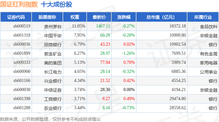 证券之星消息,11月20日,国证红利(399321)指数报收于7803.66点,涨0.05%,成交742.48亿元,换手率0.38%。当日该指数成份股中,上涨的有26家,中国银行以4.0%的涨幅领涨,下跌的有19家,陕西煤业以2.48%的跌幅领跌。
