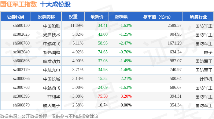 资金流向方面,国证军工(399368)指数成份股当日主力资金净流出合计18.9亿元,游资资金净流入合计4.11亿元,散户资金净流入合计14.79亿元。成份股资金流向详情见下表:
