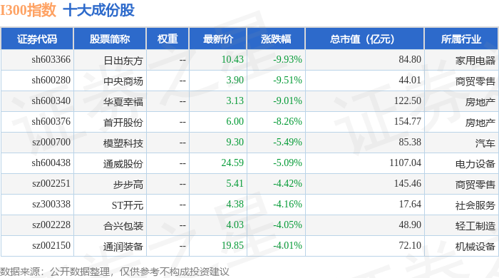 I300(399416)指数十大成份股详情如下: