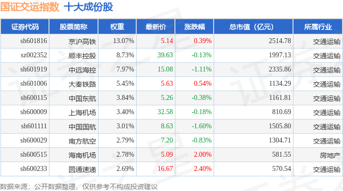 资金流向方面,国证交运(399433)指数成份股当日主力资金净流出合计4.44亿元,游资资金净流入合计1.76亿元,散户资金净流入合计2.67亿元。成份股资金流向详情见下表: