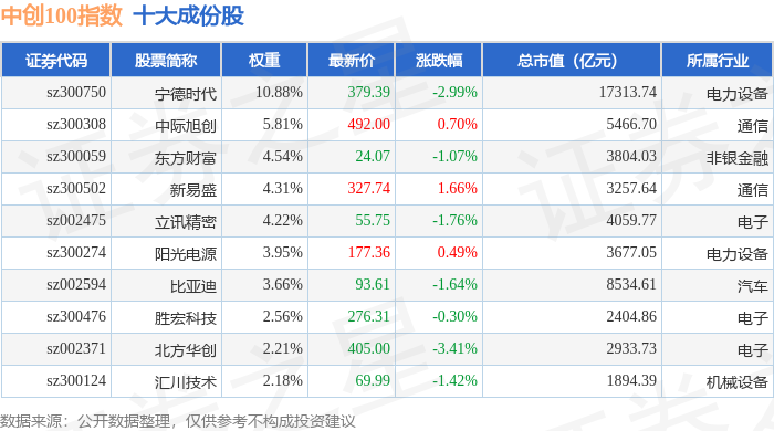 中创100(399612)指数十大成份股详情如下: