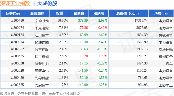 资金流向方面,深证工业(399615)指数成份股当日主力资金净流出合计53.55亿元,游资资金净流入合计6.95亿元,散户资金净流入合计46.61亿元。成份股资金流向详情见下表: