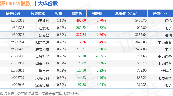 证券之星消息,11月20日,深300EW(399633)指数报收于5985.23点,跌0.71%,成交3198.13亿元,换手率1.24%。当日该指数成份股中,上涨的有81家,天华新能以6.09%的涨幅领涨,下跌的有211家,广东宏大以6.38%的跌幅领跌。