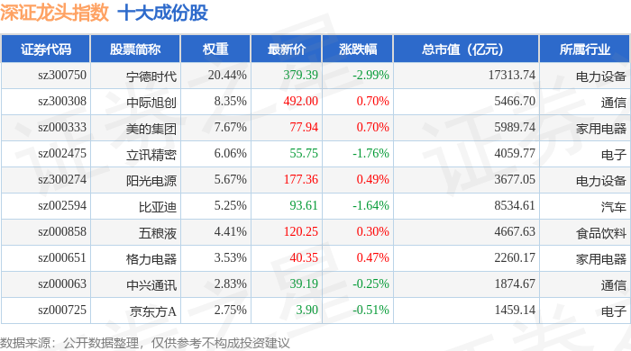 深证龙头(399653)指数十大成份股详情如下: