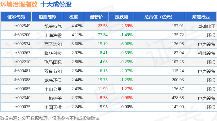 资金流向方面,环境治理(399806)指数成份股当日主力资金净流出合计3.24亿元,游资资金净流入合计1.1亿元,散户资金净流入合计2.14亿元。成份股资金流向详情见下表: