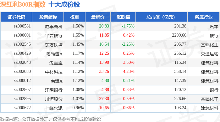 证券之星消息,11月20日,深红利300R(470062)指数报收于8066.73点,跌0.42%,成交1364.17亿元,换手率1.36%。当日该指数成份股中,上涨的有82家,和而泰以6.75%的涨幅领涨,下跌的有205家,新宙邦以6.27%的跌幅领跌。