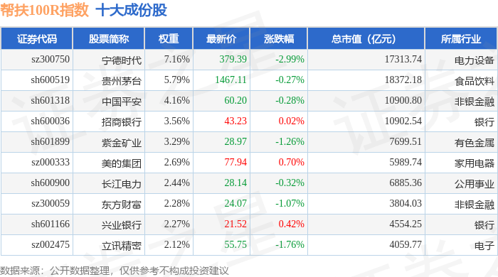 证券之星消息,11月20日,帮扶100R(480065)指数报收于2707.83点,跌0.49%,成交1827.63亿元,换手率0.42%。当日该指数成份股中,上涨的有38家,中国银行以4.0%的涨幅领涨,下跌的有57家,隆基绿能以5.19%的跌幅领跌。