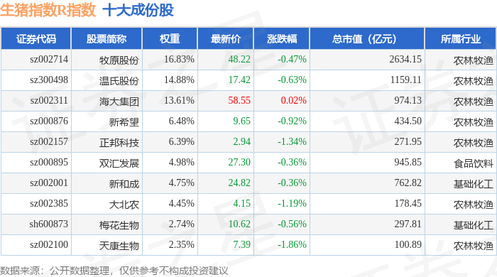 资金流向方面,生猪指数R(480073)指数成份股当日主力资金净流出合计4.06亿元,游资资金净流入合计3.63亿元,散户资金净流入合计4288.97万元。成份股资金流向详情见下表: