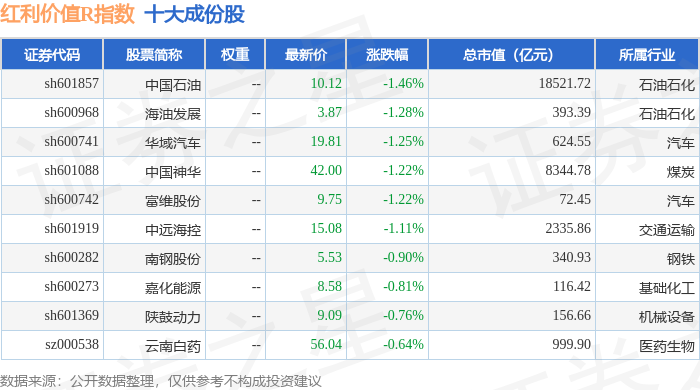 资金流向方面,红利价值R(489016)指数成份股当日主力资金净流入合计3.05亿元,游资资金净流出合计2.03亿元,散户资金净流出合计1.02亿元。成份股资金流向详情见下表: