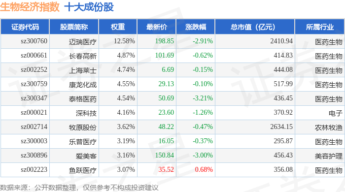 证券之星消息,11月20日,生物经济(970038)指数报收于2160.29点,跌1.01%,成交143.5亿元,换手率1.07%。当日该指数成份股中,上涨的有11家,京新药业以2.81%的涨幅领涨,下跌的有37家,泰格医药以3.21%的跌幅领跌。