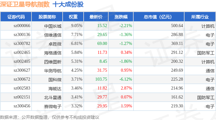 深证卫星导航(970050)指数十大成份股详情如下: