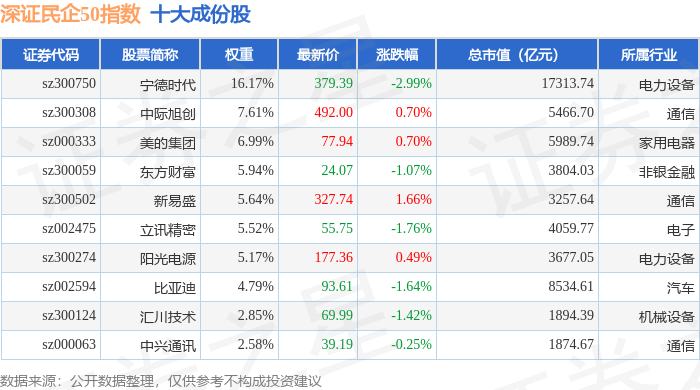深证民企50(970057)指数十大成份股详情如下: