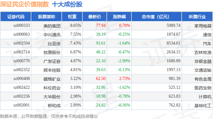 资金流向方面,深证民企价值(970072)指数成份股当日主力资金净流出合计16.79亿元,游资资金净流入合计2.43亿元,散户资金净流入合计14.36亿元。成份股资金流向详情见下表: