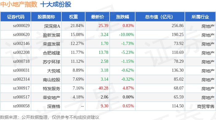 中小地产(971002)指数十大成份股详情如下: