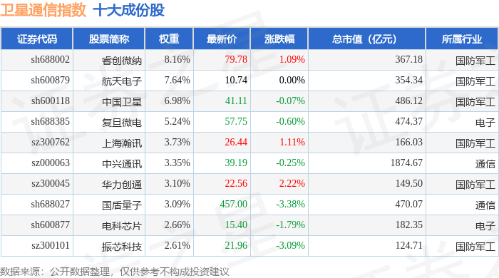 证券之星消息,11月20日,卫星通信(980018)指数报收于3642.45点,跌0.24%,成交276.82亿元,换手率1.08%。当日该指数成份股中,上涨的有24家,光库科技以3.5%的涨幅领涨,下跌的有25家,华曙高科以7.02%的跌幅领跌。
