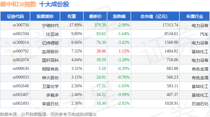 证券之星消息,11月20日,碳中和50(980021)指数报收于2272.44点,跌1.9%,成交557.88亿元,换手率1.08%。当日该指数成份股中,上涨的有11家,融捷股份以3.56%的涨幅领涨,下跌的有37家,多氟多以9.99%的跌幅领跌。
