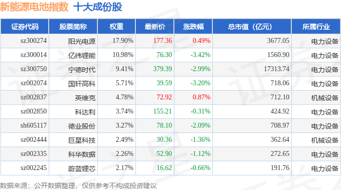 新能源电池(980027)指数十大成份股详情如下: