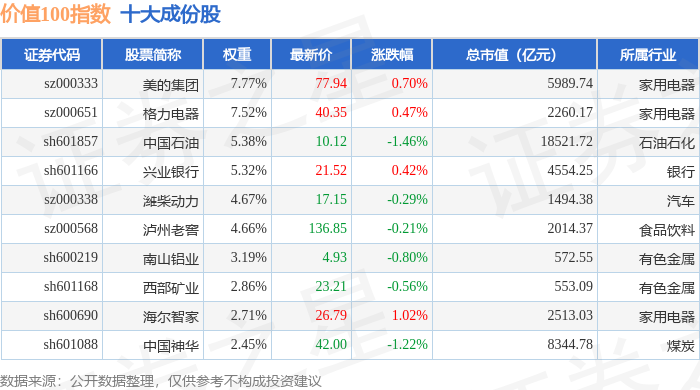 价值100(980081)指数十大成份股详情如下: