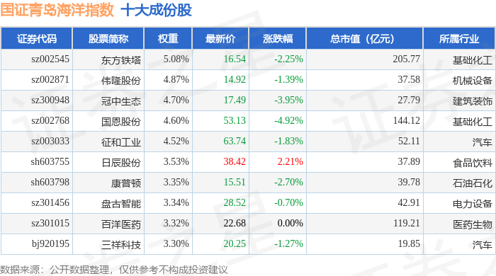 国证青岛海洋(980532)指数十大成份股详情如下: