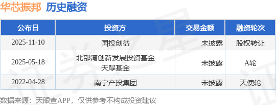 证券之星消息,根据天眼查APP于11月10日公布的信息整理,广西华芯振邦半导体有限公司股权转让融资,交易额未披露。