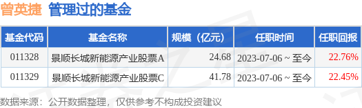 曾英捷先生:工学硕士。曾任一汽大众规划部工程师,宝能钜盛华财务部经营分析师,兴业证券股份有限公司经济与金融研究院分析师。2020年12月加入景顺长城基金管理有限公司,历任研究部研究员、基金经理助理,2023年7月起担任研究部基金经理。现任景顺长城新能源产业股票型证券投资基金基金经理。