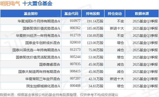 根据2025基金Q3季报公募基金重仓股数据,重仓该股的公募基金共23家,其中持有数量最多的公募基金为华夏基金的华夏鸿阳6个月持有期混合A。华夏鸿阳6个月持有期混合A目前规模为20.34亿元,最新净值0.7834(11月20日),较上一交易日下跌0.58%,近一年上涨20.37%。该公募基金现任基金经理为孙轶佳。孙轶佳在任的基金产品包括:华夏新兴消费混合A,管理时间为2018年11月7日至今,期间收益率为111.84%;华夏新兴经济一年持有混合A,管理时间为2021年7月27日至今,期间收益率为2.86%;华夏优加生活混合A,管理时间为2021年9月23日至今,期间收益率为-24.37%;华夏常阳三年定开混合,管理时间为2021年11月2日至今,期间收益率为-6.87%。
