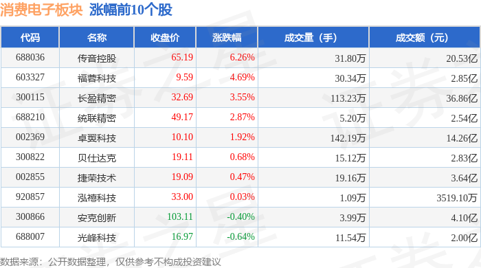 证券之星消息,11月21日消费电子板块较上一交易日下跌5.4%,显盈科技领跌。当日上证指数报收于3834.89,下跌2.45%。深证成指报收于12538.07,下跌3.41%。消费电子板块个股涨跌见下表: