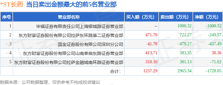 证券之星消息,沪深交易所2025年11月21日公布的交易公开信息显示,*ST长药(300391)因日振幅值达到30%的前5只证券登上龙虎榜。此次是近5个交易日内第2次上榜。