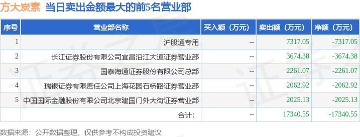 证券之星消息,沪深交易所2025年11月21日公布的交易公开信息显示,方大炭素(600516)因有价格涨跌幅限制的日收盘价格跌幅偏离值达到7%的前五只证券登上龙虎榜。此次是近5个交易日内第1次上榜。
