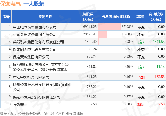 根据保变电气2025年三季报公布的十大股东详情如下: