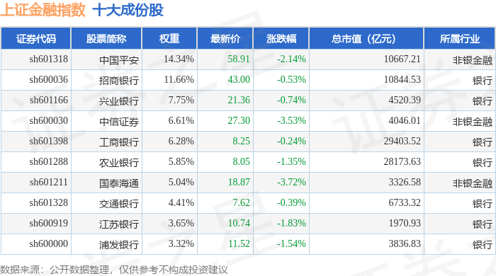 上证金融(000038)指数十大成份股详情如下: