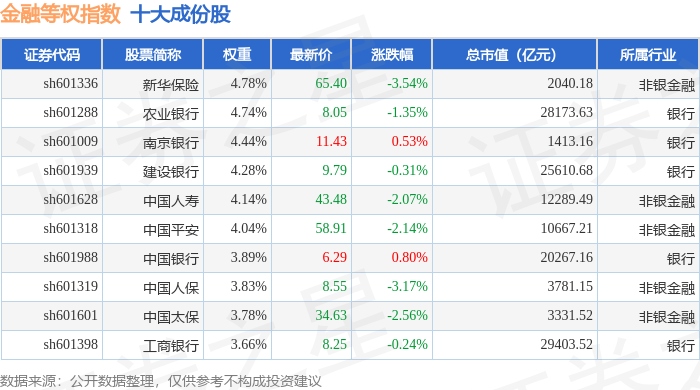 金融等权(000076)指数十大成份股详情如下: