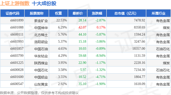 资金流向方面,上证上游(000094)指数成份股当日主力资金净流出合计58.69亿元,游资资金净流入合计15.13亿元,散户资金净流入合计43.56亿元。成份股资金流向详情见下表: