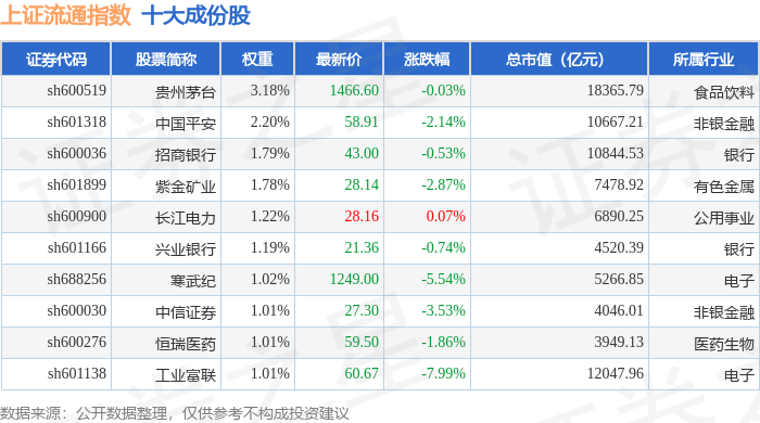 上证流通(000090)指数十大成份股详情如下: